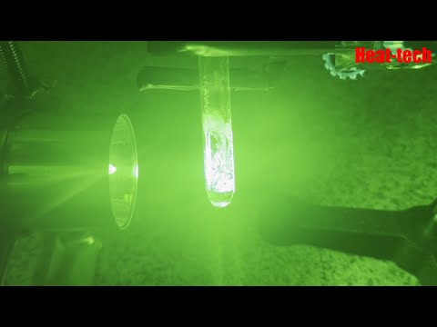 ใช้เครื่องทำความร้อนจุดฮาโลเจนเพื่อฉายรังสีอินฟราเรดเฉพาะจุดไปยังผลึกแอมโมเนียมคลอไรด์ในหลอดทดลอง