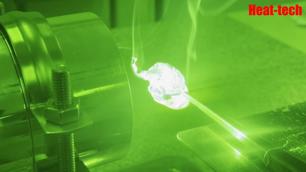 บริเวณที่ถูกฉายรังสีจะมีอุณหภูมิสูงขึ้นอย่างรวดเร็ว พร้อมเกิดควันสีขาวจากกระบวนการสลายตัวทางความร้อน จากนั้นเกิดการติดไฟ และในที่สุดวัสดุจะเกิดการคาร์บอไนซ์