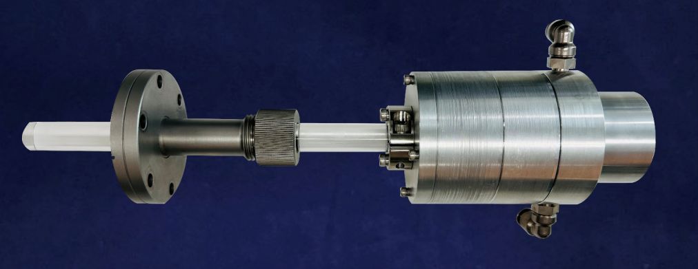 ตัวอย่างการสอดแท่งแก้ว HGRH-70 เข้ากับพอร์ตเกจสุญญากาศ สามารถประยุกต์ใช้ในการให้ความร้อนภายในห้องสุญญากาศได้